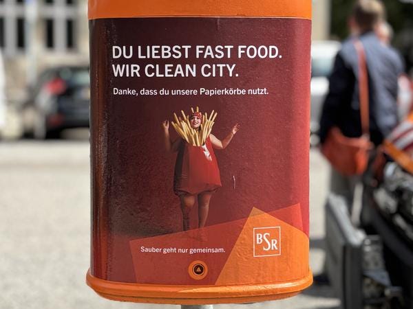 Not sure what to think about this new anti-littering campaign other than it’s so Denglish that a lot of non-German speakers will understand it too, so I guess that’s a good thing. Mayor Kai Wegner is on bit of a mission to clean up Berlin (good luck). The city has bumped up fines: Illegal disposal of bulky waste like matresses will soon cost at least €4,000 instead of the previous €150, and dropping cigarette butts will cost €250, up from €55. Fun fact about Berlin: a lot of rules about stuff, not a lot of enforcement.