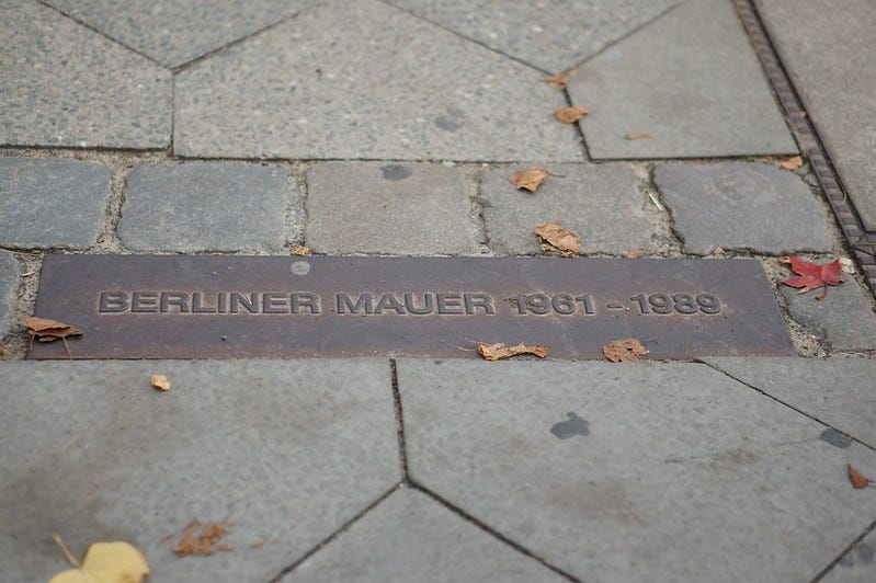 Those cobblestones marking the location of the Berlin Wall through Mauerpark are basically wrong, according to taz. Weird in a country so obsessed with precision. The cobbles show where the Wall was when it fell but it had only been there since August 1, 1988 after East and West Germany did a little land swap. The Wall had traditionally run along Schwedter Strasse (the cobblestone street that bisects eastern Berlin’s best park). In true Berlin fashion, the new anti-fascism barrier wasn’t even complete by the time it became obsolete — the construction equipment was then used to dismantle it. West Berlin got a chunk of Potsdamer Platz in exchange — what a lousy deal.