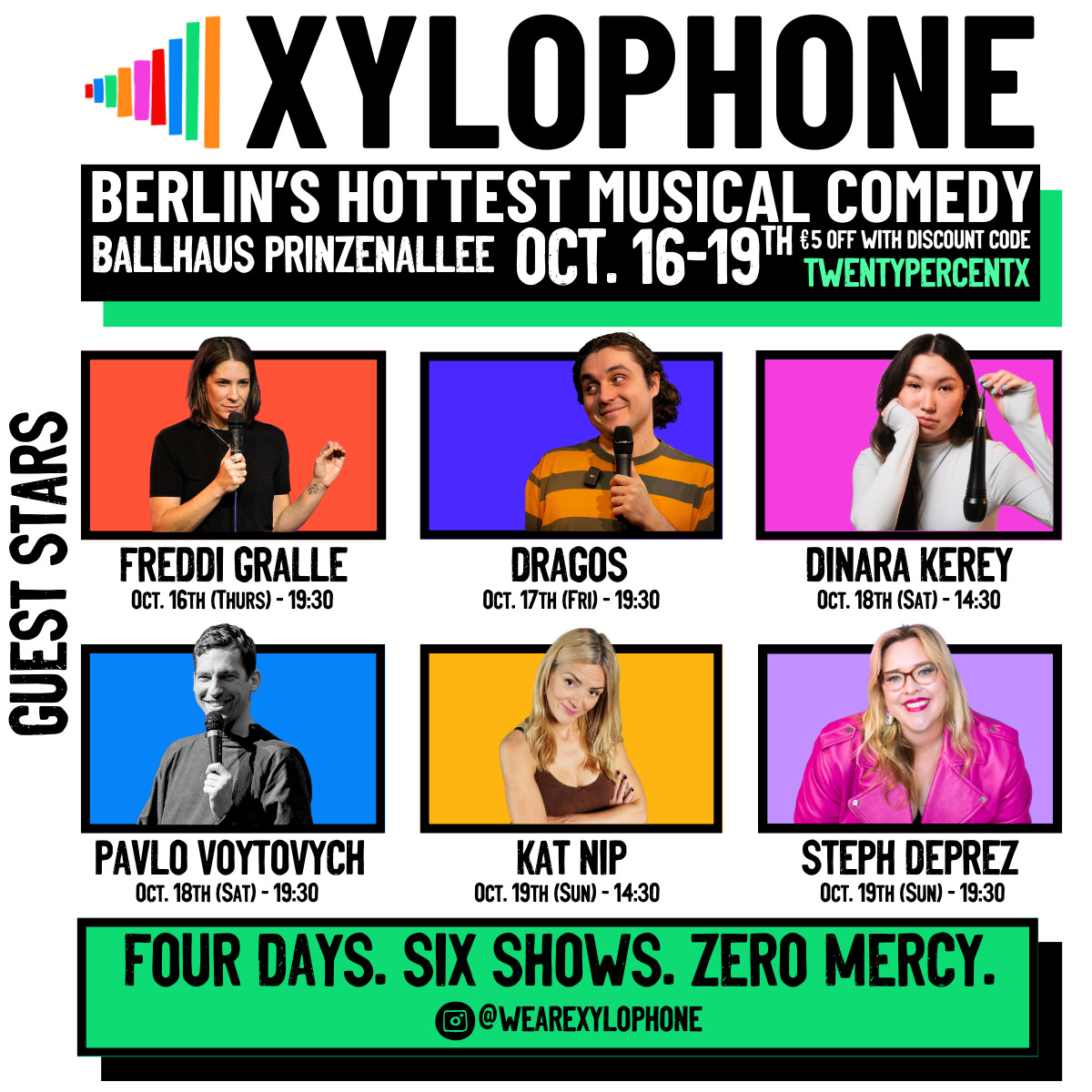Then: Xylophone, Berlin’s hottest musical comedy, transforms your suggestions into a once-in-a-lifetime musical that’ll have you scream-singing the choruses and dancing in the aisles.