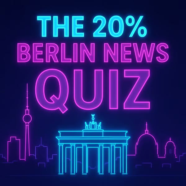 I’d love to see you all at the 20% Berlin News Quiz next Wednesday. Spots limited!
