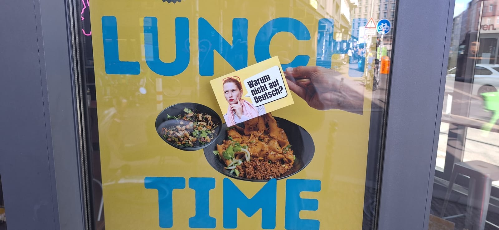 Personally, I feel you should make an effort to learn the local language if you stay somewhere for more than a few months. But tourists, digital nomads etc just aren’t going to. If you want to advertise lunch in Mitte, you’re going to say “lunch” and not necessarily “Mittagstisch”.