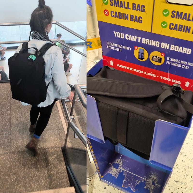 Ryanair’s free bag limit is 40×30×20cm. Bigger and you pay up to €75 at the gate.